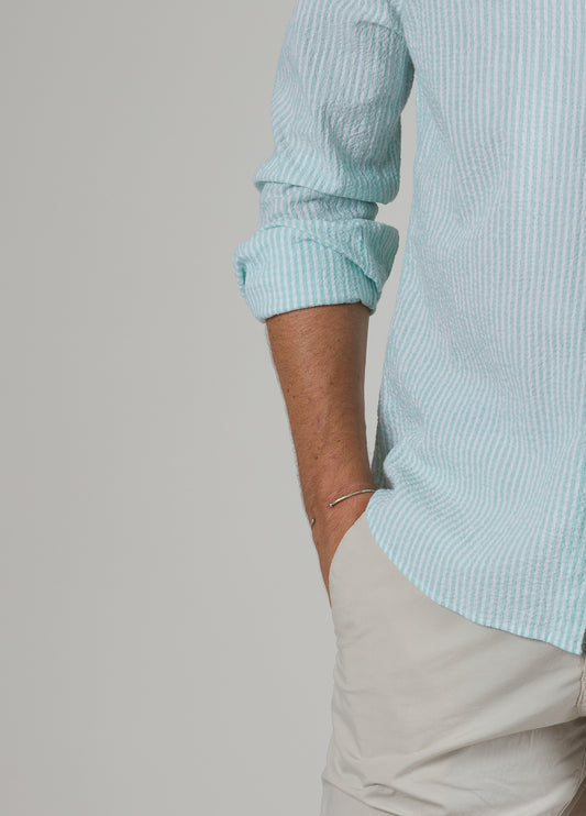 Camisa sport seersucker raya verde
