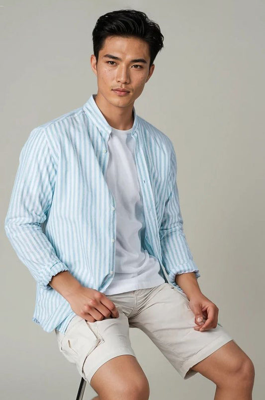 Camisa sport mao rayas verde agua