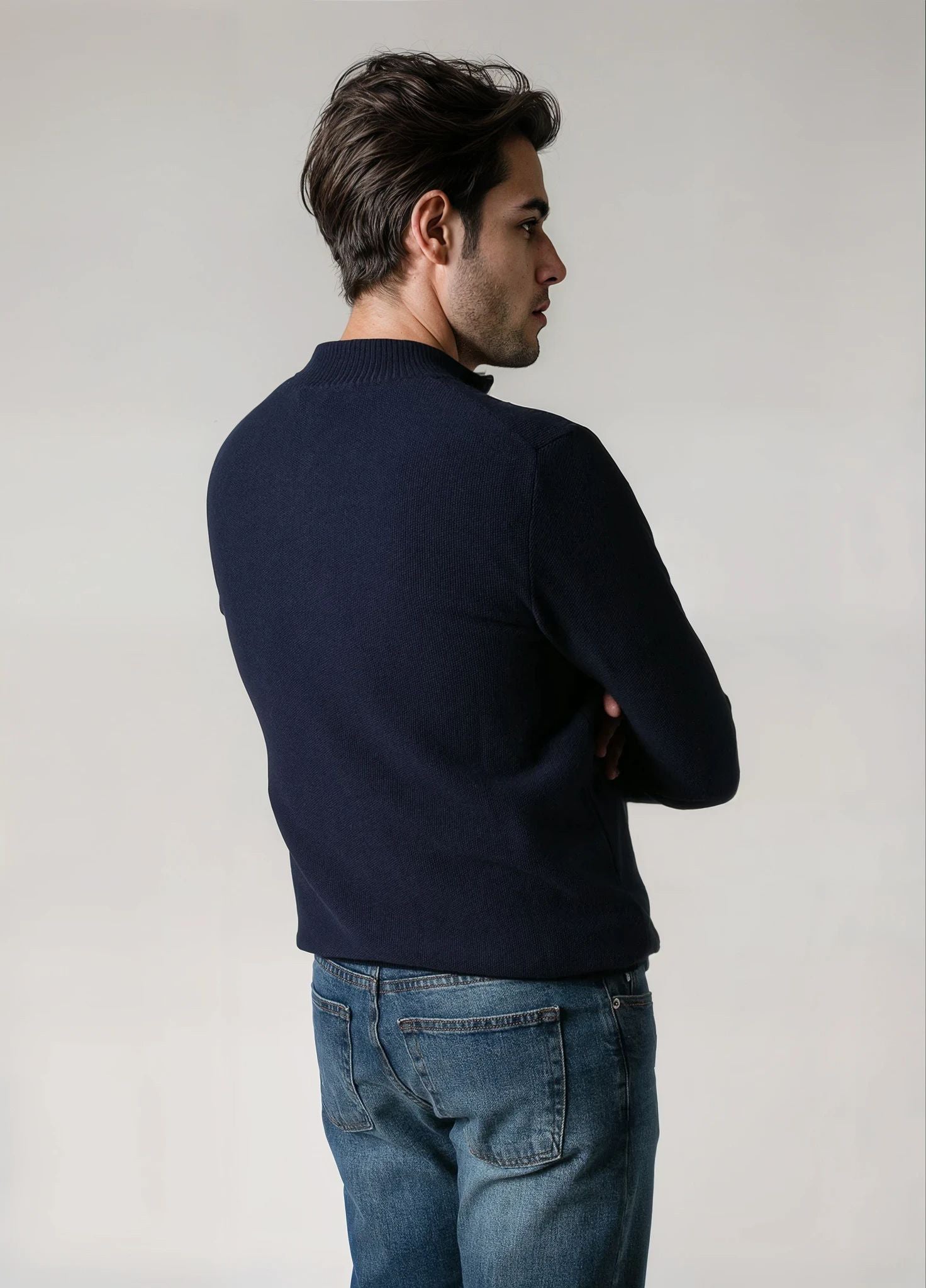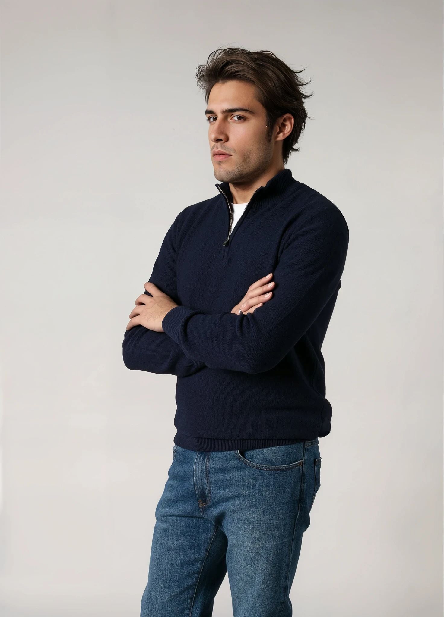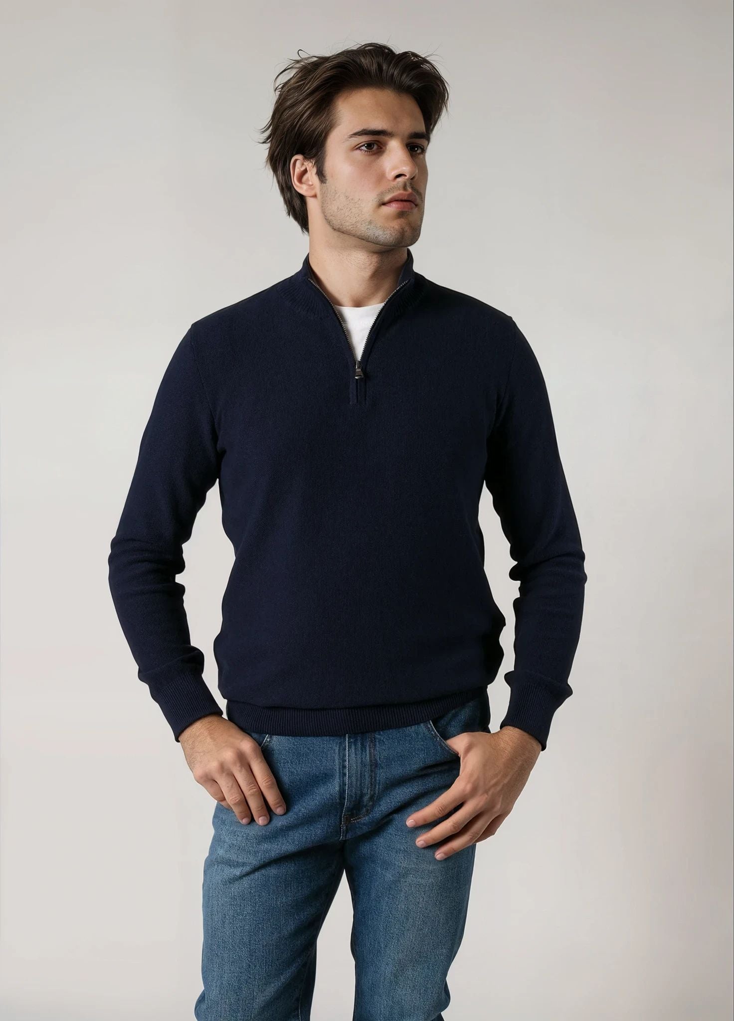 Jerséy cuello zip punto de arroz marino