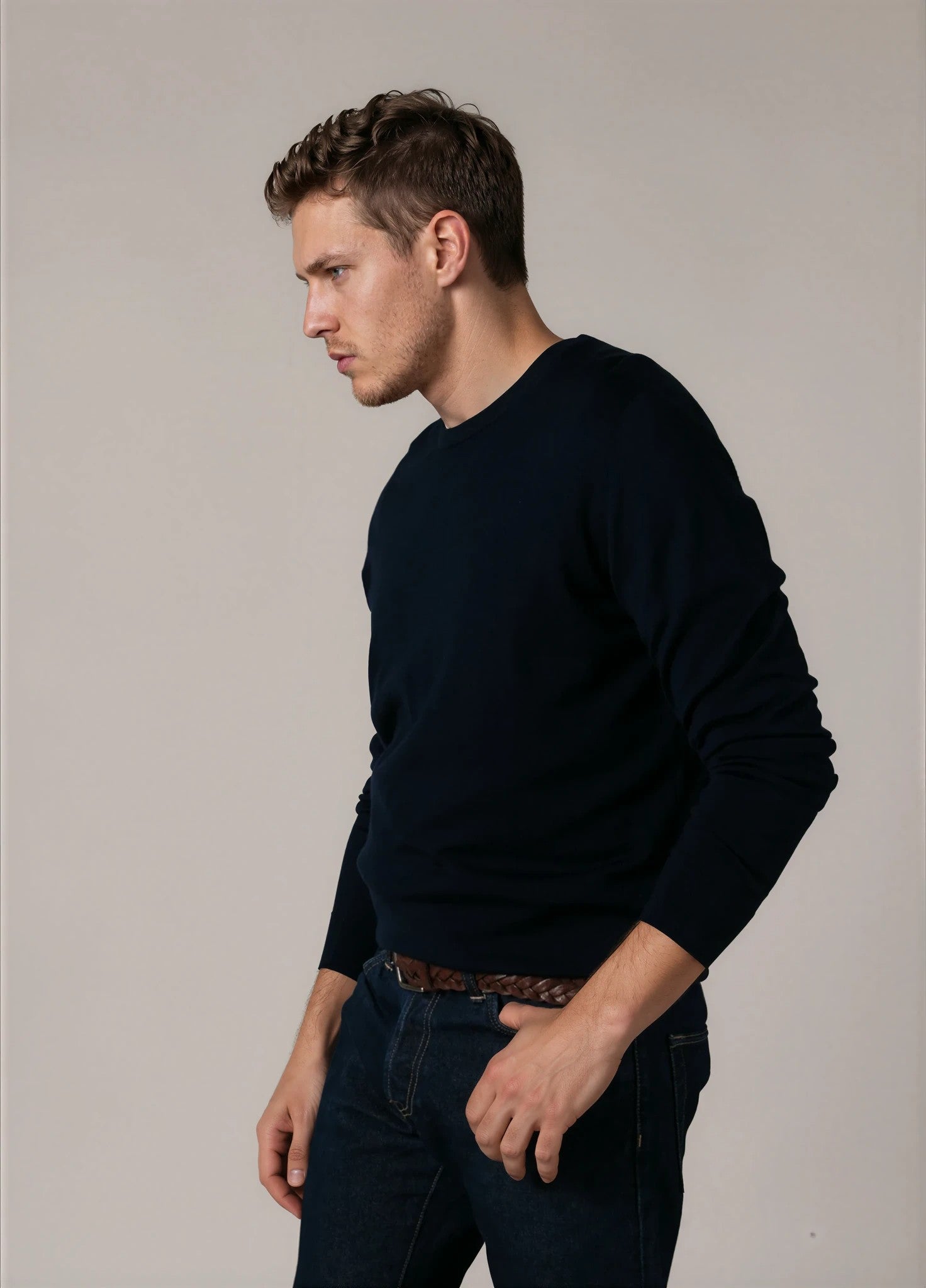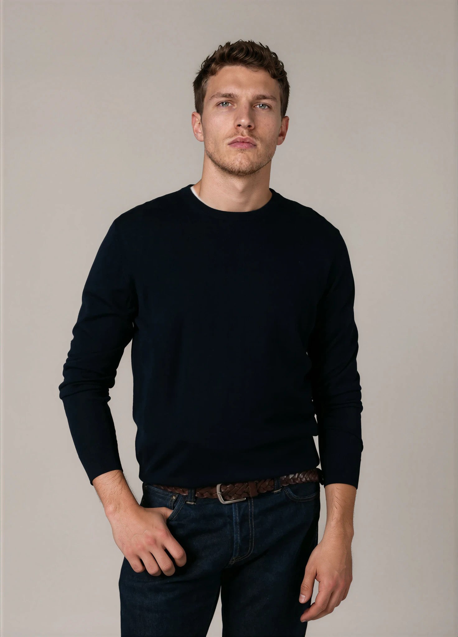 Jersey cuello redondo lana merino azul marino