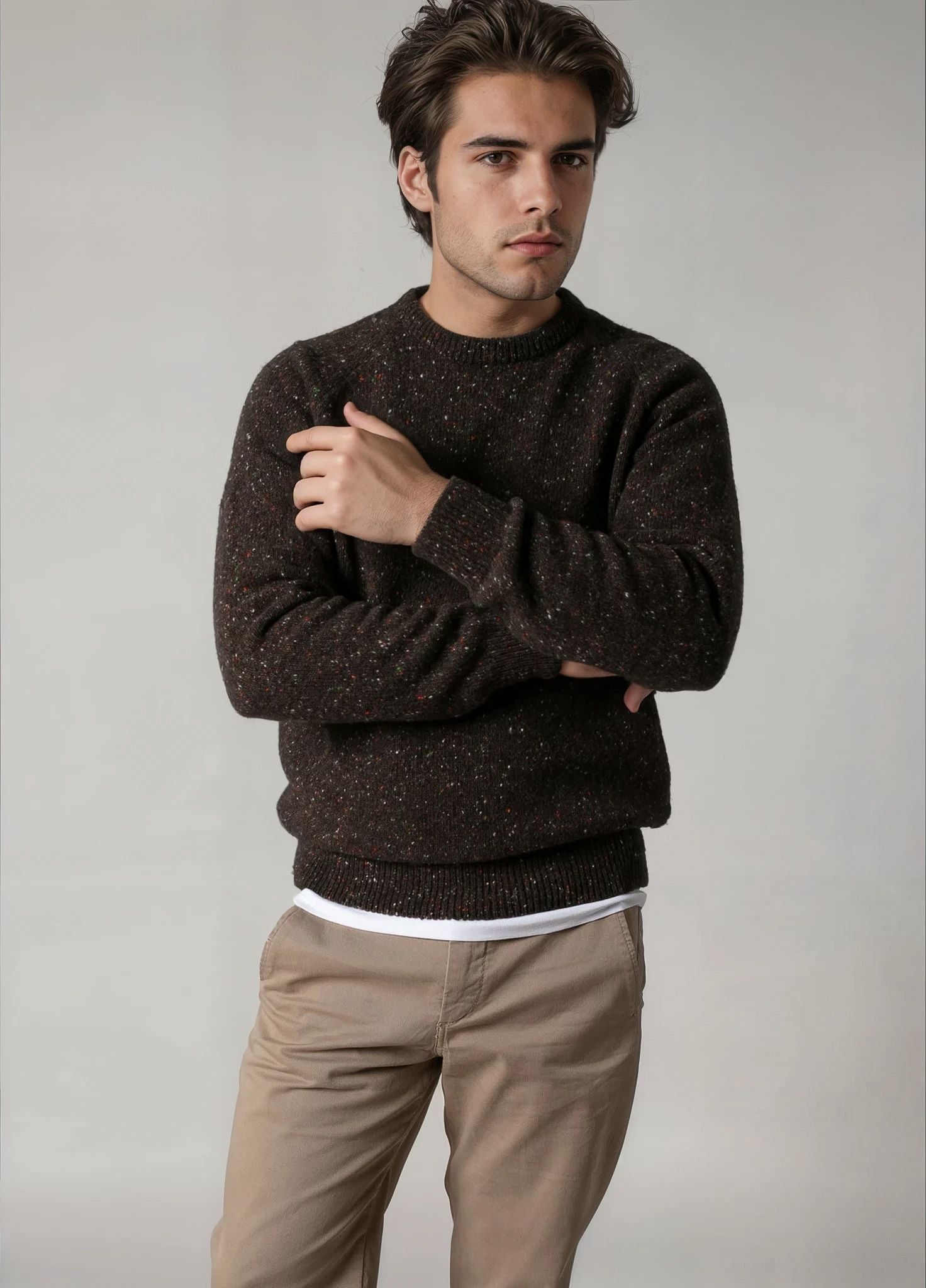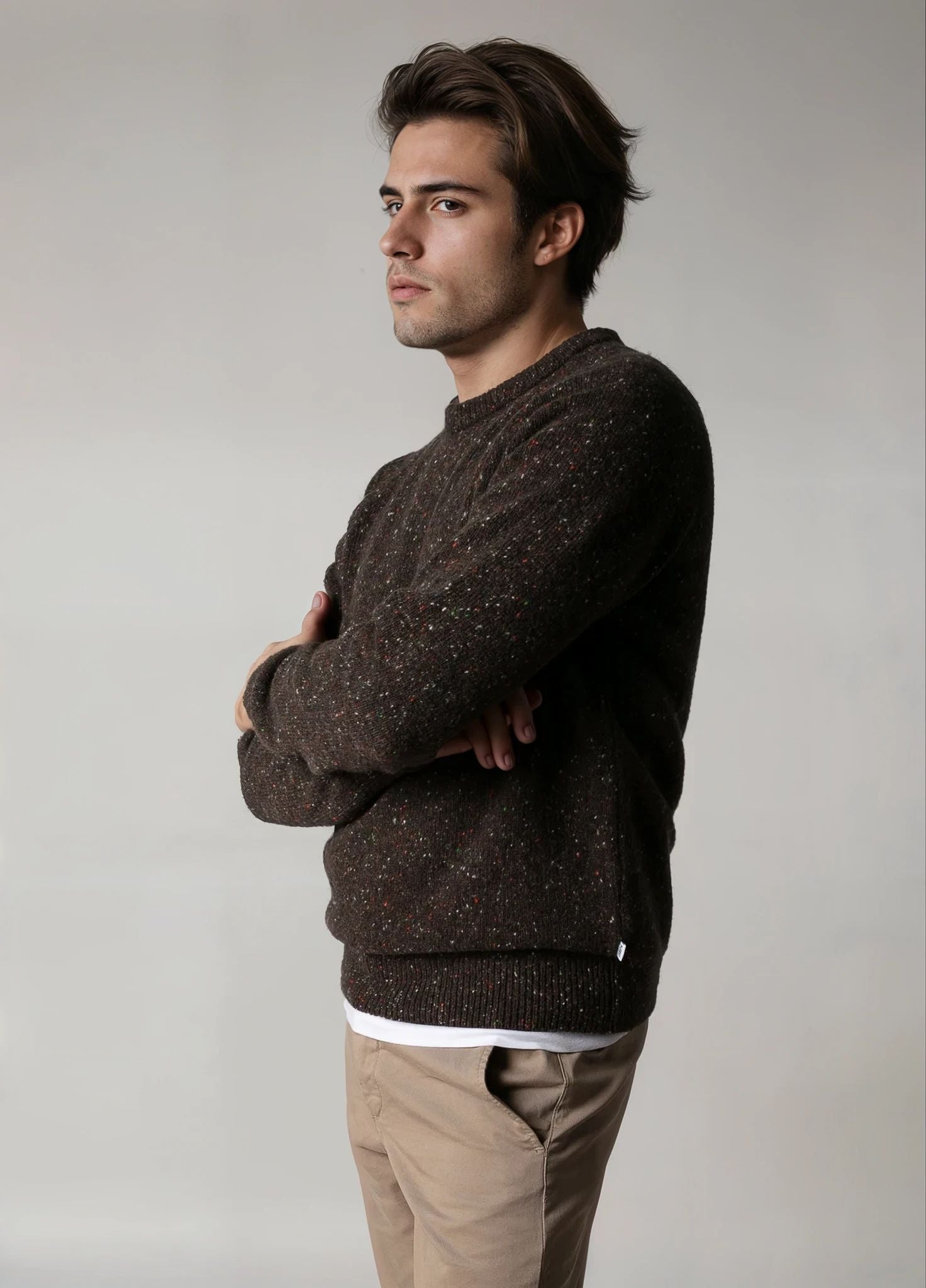 Jersey cuello redondo jaspeado marrón (PRÓXIMAMENTE)