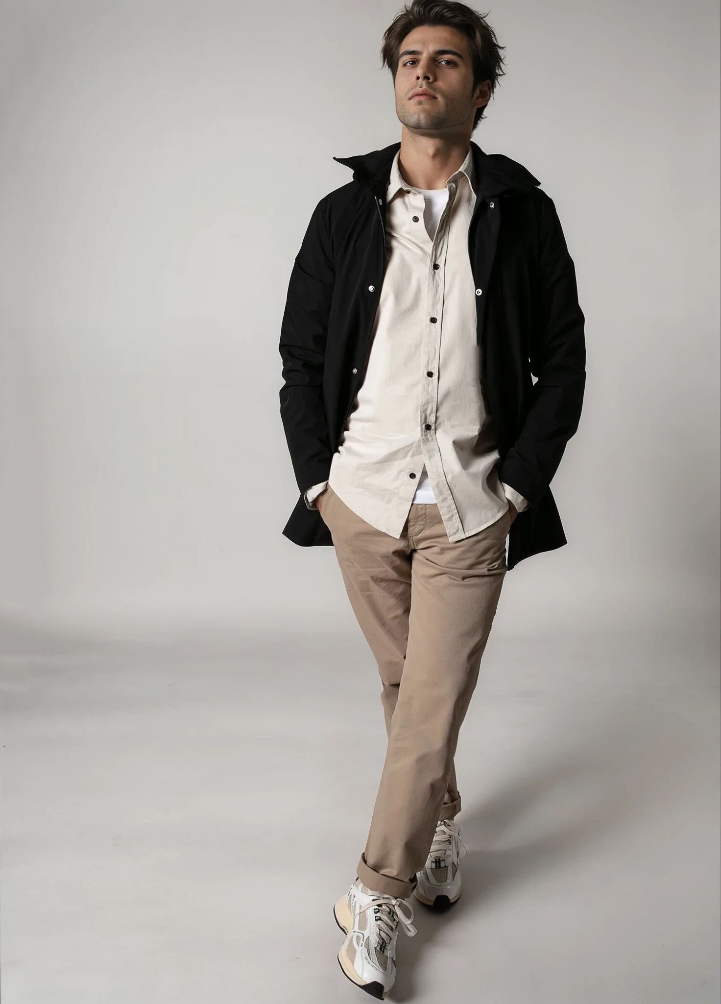 Cierre con botones a presión ocultos.