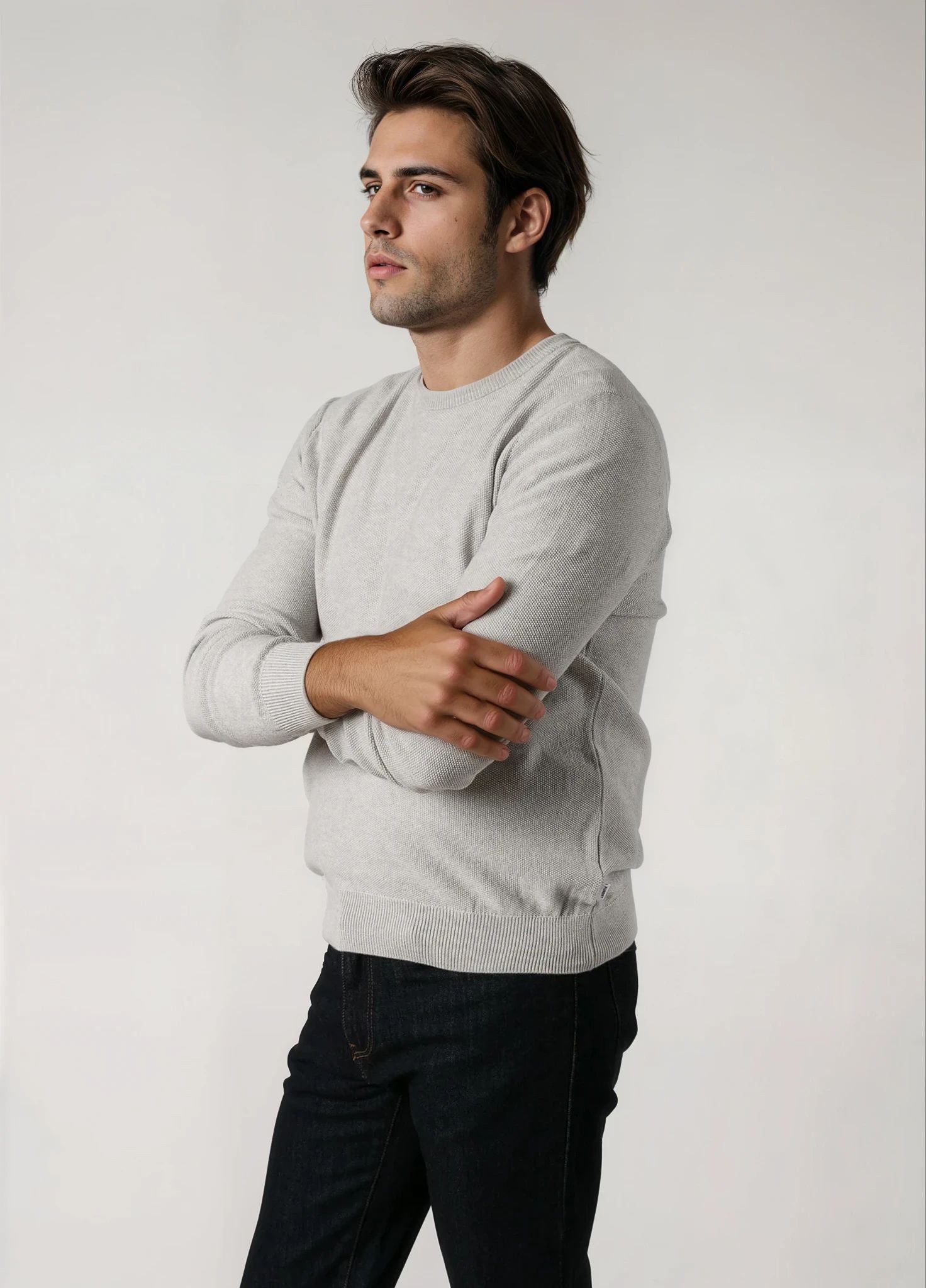 Jersey cuello redondo punto de arroz gris perla