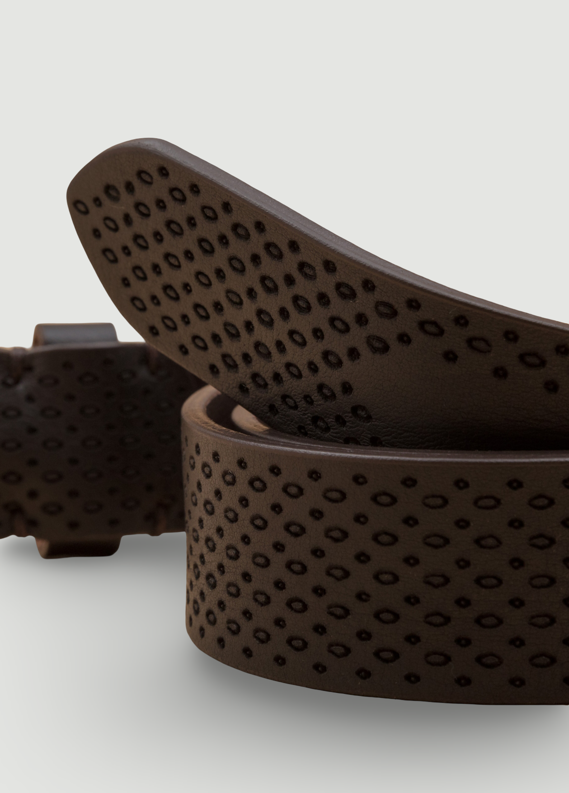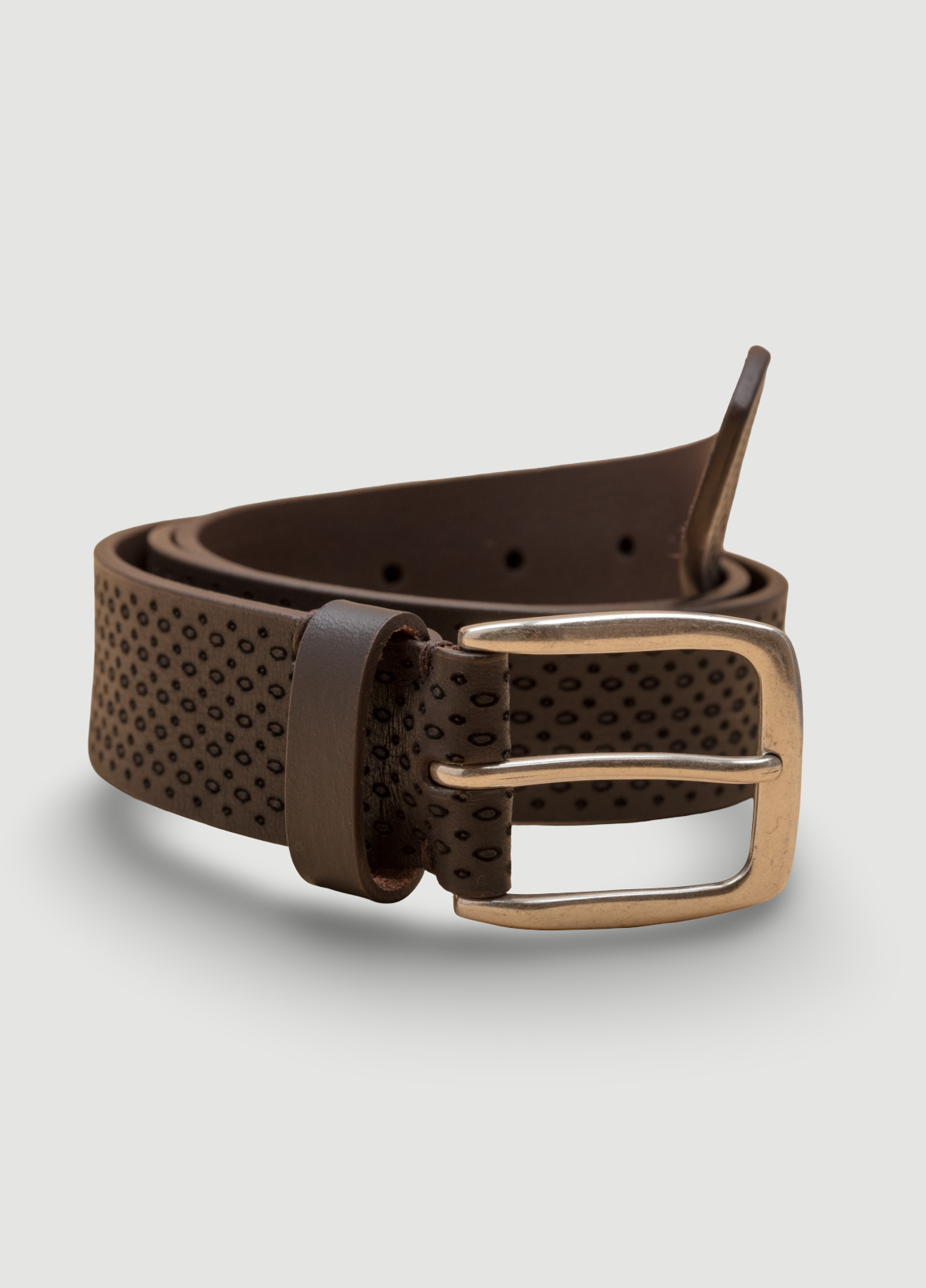 Cinturón sport, confeccionado artesanalmente en 100% piel con el estilo clásico que caracteriza a nuestra colección de cinturones Furest. Piel perforada. Hebilla cuadrada en níquel mate.