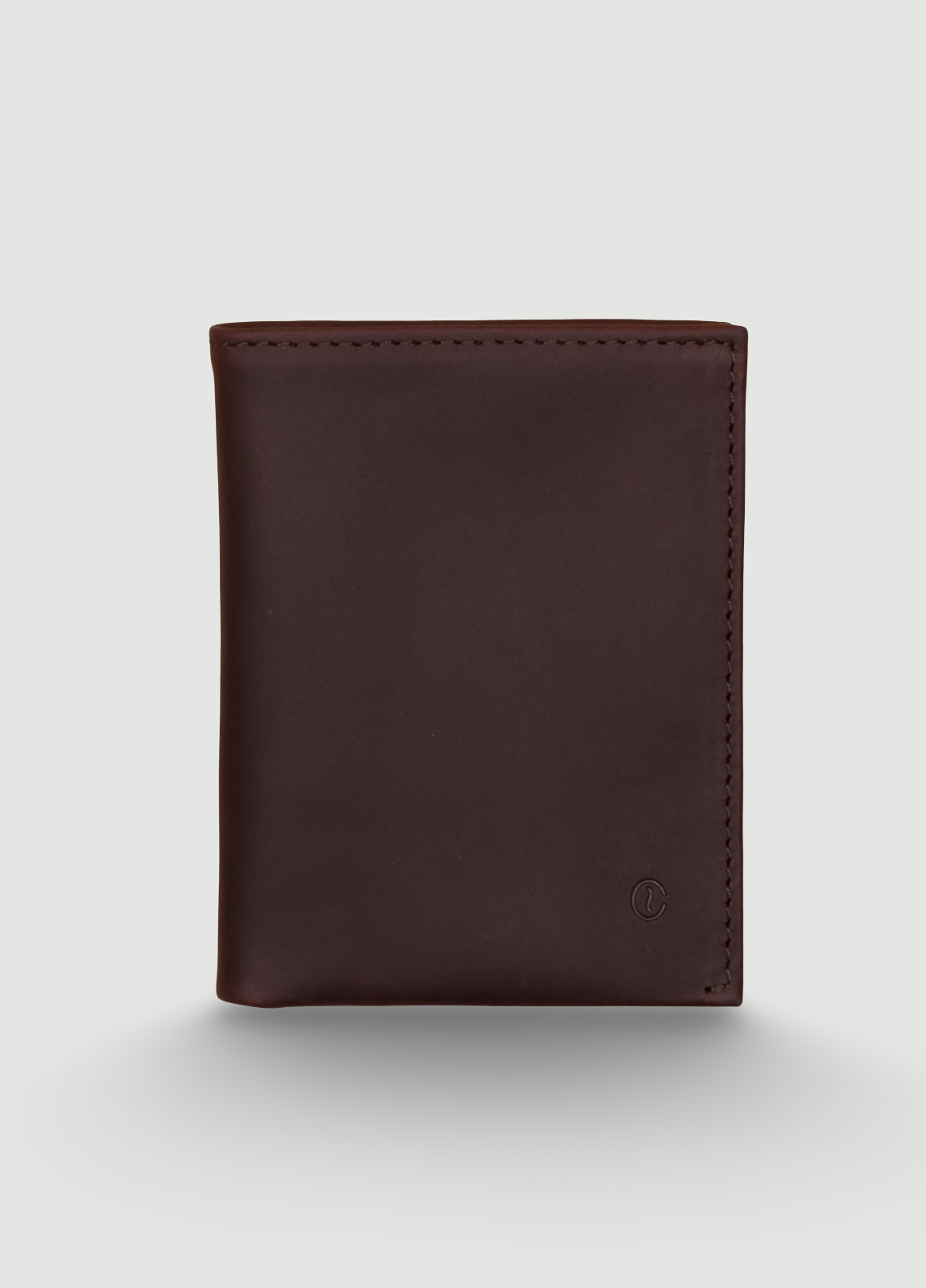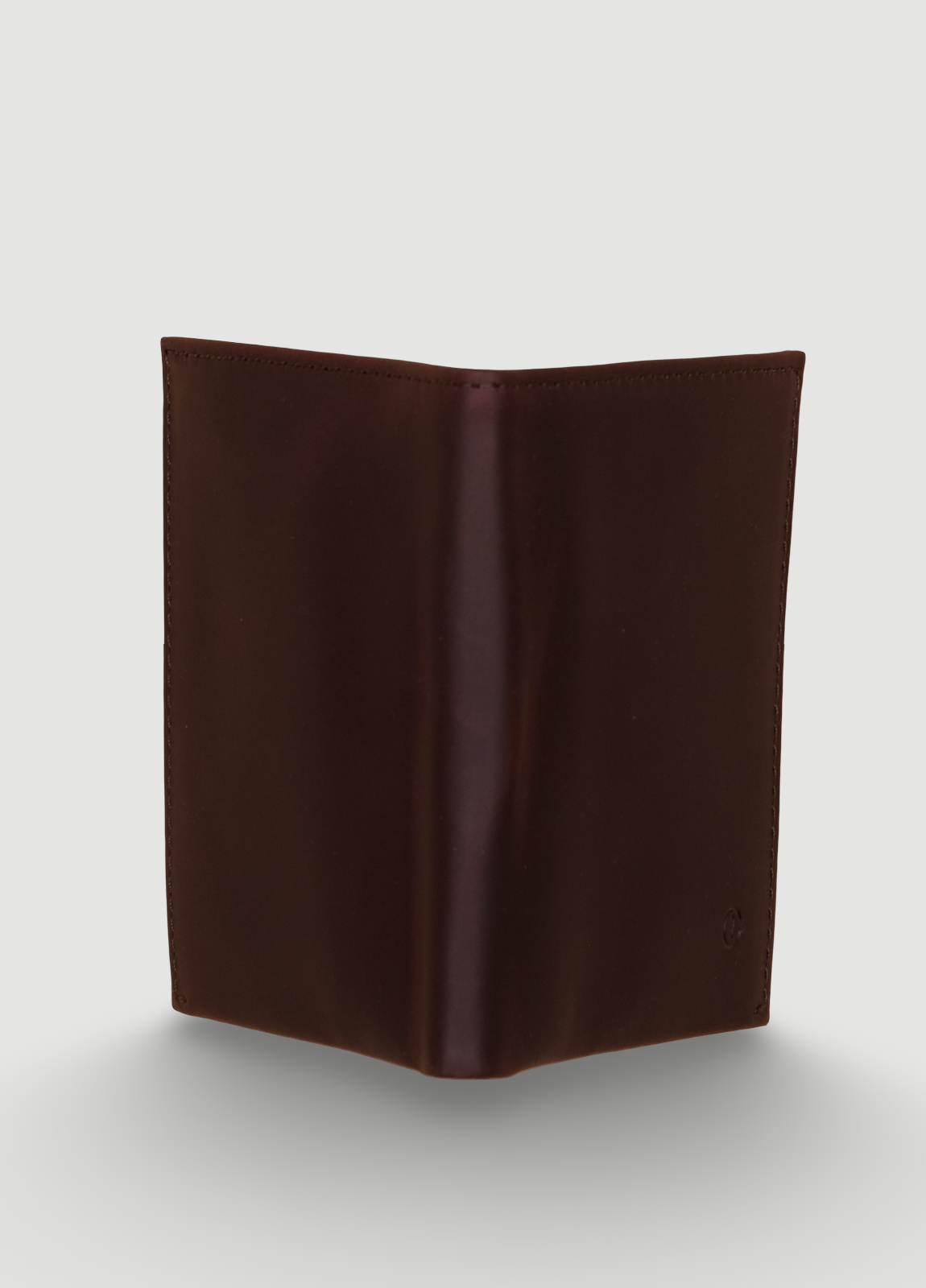 Billetero CAFÉ LEATHER de piel color marrón oscuro.